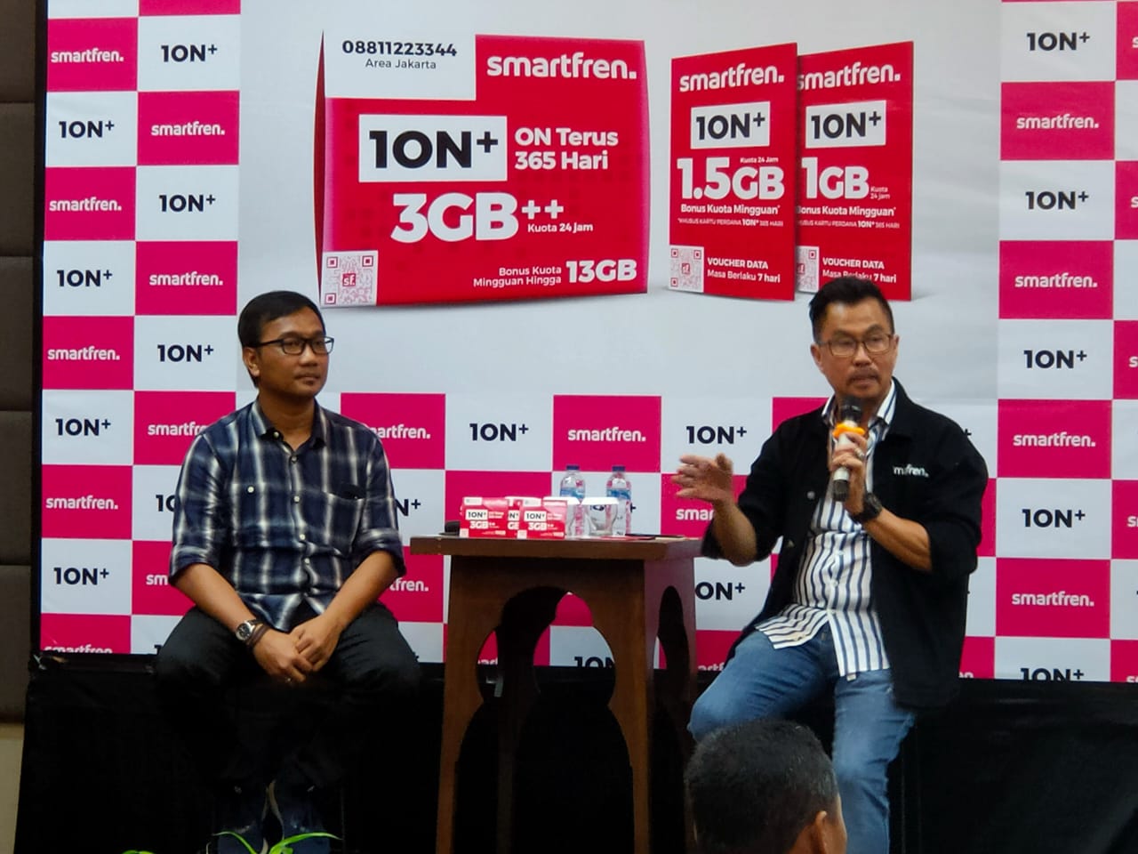 Smartfren merilis Kartu Perdana 1ON+ (baca : ion plus). Kartu perdana yang dibanderol dengan harga Rp 20 Ribu ini memberikan berbagai macam keuntungan, antara lain pelanggan yang membeli dan mengaktifkan Kartu Perdana 1ON+ akan mendapatkan benefit aktivasi Kartu Perdana sebesar 0,5GB setiap bulannya selama 6 bulan dengan total kuota 3GB. Untuk setiap pembelian voucher data, pelanggan juga akan mendapatkan bonus kuota mingguan dengan total bonus kuota hingga 13 GB selama setahun. Masa aktif kartu perdana sangat panjang hingga 365 hari, sehingga pelanggan tidak perlu takut kartu akan hangus. Keuntungan lainnya adalah kuota yang didapat pelanggan semuanya adalah kuota utama dan dapat digunakan di semua aplikasi untuk chatting, video streaming dan sosial media (FB, IG, twitter, dan lainnya).