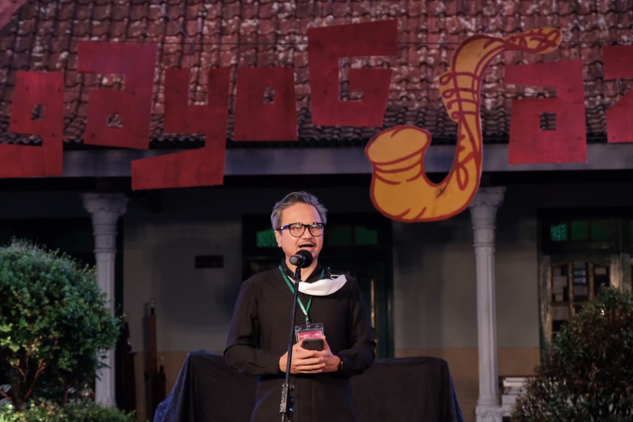 Sleman - Dengan semangat #DaringTakGentar, Ngayogjazz 2020 menghadirkan tiga panggung melalui situsnya, Panggung Terjang, Panggung Serentak, dan Panggung Juang. Panggung Terjang mengambil konsep angkringan, dan Panggung Serentak diset menyerupai ruang tamu. Sedangkan Panggung Juang adalah menghadirkan aksi penampil secara langsung dari Karang Tanjung seperti Semesta Leah, Bonita & Adoy, Brayat Endah Laras, Bintang Indrianto feat Sruti Respati dan Eugen Bounty, dan KuaEtnika.