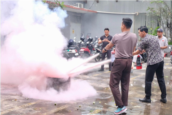 “Seluruh karyawan diajarkan menggunakan alat pemadam api tradisional yang berupa karung goni atau selimut yang sudah dicelupkan ke dalam air. Kemudian pelatihan menggunakan alat pemadam api ringan (APAR) juga dipraktekkan, mulai dari APAR yang bersifat liquid, CO2 hingga Powder, semua diajarkan untuk memegang yang benar hingga praktek langsung memadamkan api dengan alat tersebut. Sebagai karyawan hotel, kita harus cepat tanggap dalam menangani bencana kebakaran”, ucap Rawat Musthofa selaku Chief Engineering di Hotel Harper Malioboro Yogyakarta.