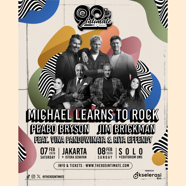 Jakarta - Setelah sukses besar pada edisi pertamanya di tahun 2024 yang mencatatkan tiket terjual habis di Jakarta dan Surabaya, The 90’s Intimate 2nd Edition kembali hadir untuk kedua kalinya di Indonesia dan akan menyapa para penikmat musik di Jakarta dan Solo. Konser ini dipersembahkan oleh Akselerasi Entertainment sebagai bagian dari komitmen menghadirkan pengalaman musik berkualitas bagi penikmat musik lintas generasi. Dirancang khusus untuk membangkitkan nostalgia era 90-an dengan menghadirkan musisi-musisi legendaris internasional, The 90’s Intimate Concert dikemas dalam konsep yang intim dan personal, mengajak para penggemar menikmati deretan lagu hits yang menemani masa muda mereka, sekaligus menciptakan pengalaman musikal yang hangat, emosional, dan penuh kenangan.